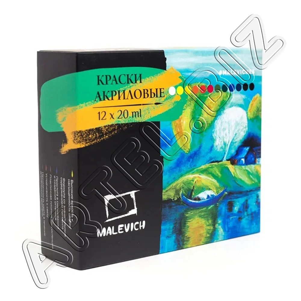 Набор акриловых красок, 12 цв. по 20 мл, Малевичъ