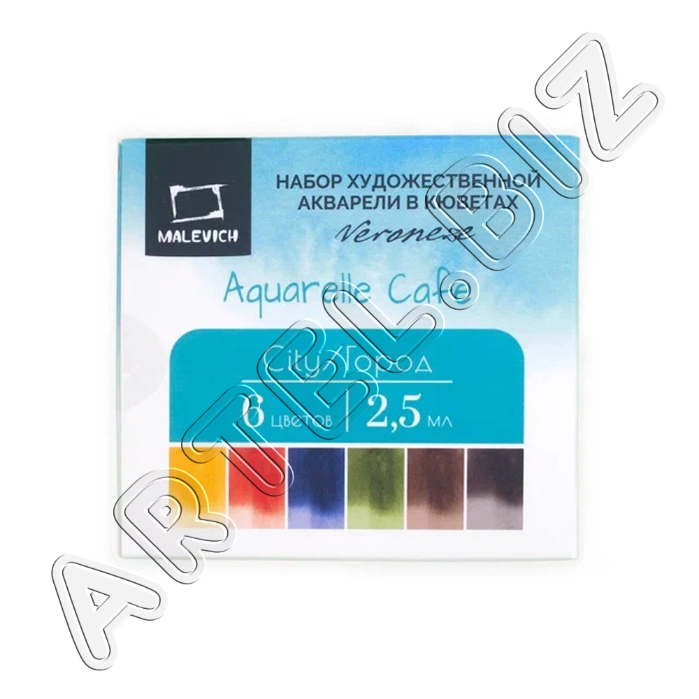 Набор акварели Veroneze, кюветы 2,5 мл, Город, 6 цв., Малевичъ