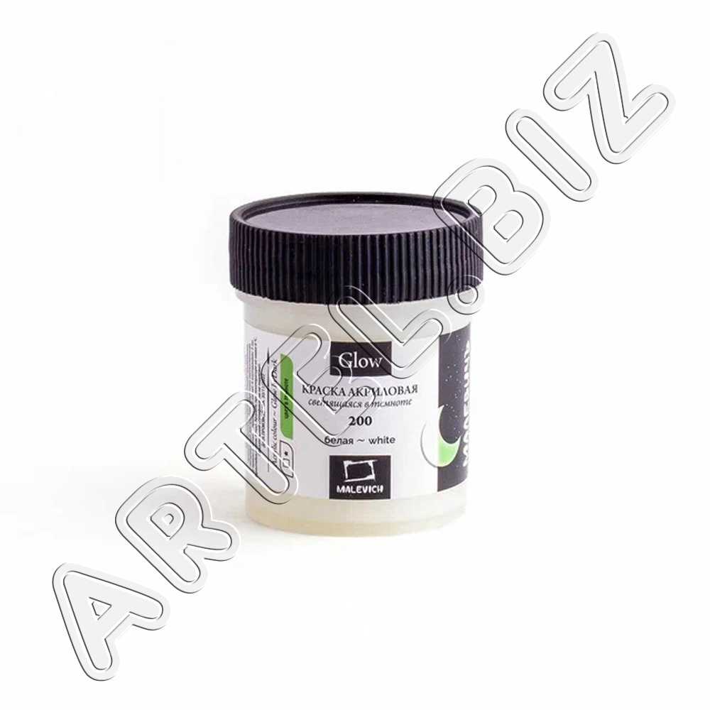 Акриловая краска Glow светящаяся в темноте, Белая, 50 мл, Малевичъ