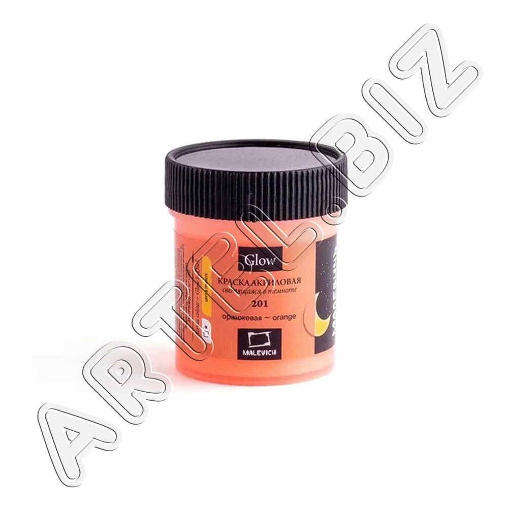 Акриловая краска Glow светящаяся в темноте, Оранжевая, 50 мл, Малевичъ