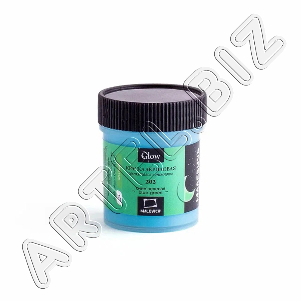 Акриловая краска Glow светящаяся в темноте, Сине-зелёная, 50 мл, Малевичъ
