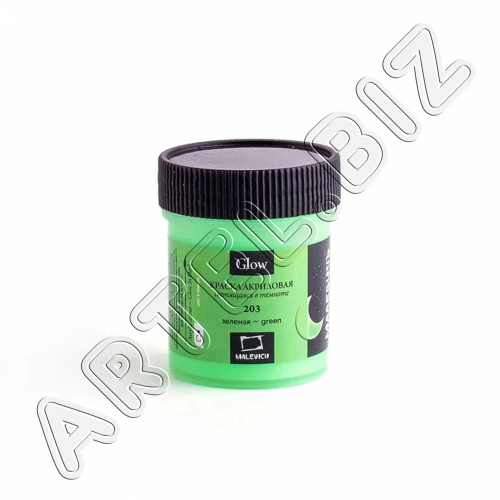 Акриловая краска Glow светящаяся в темноте, Зелёная, 50 мл, Малевичъ