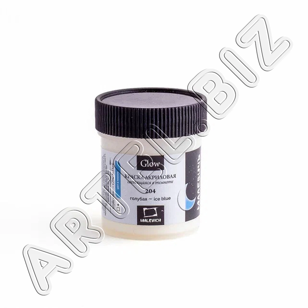 Акриловая краска Glow светящаяся в темноте, Голубая, 50 мл, Малевичъ