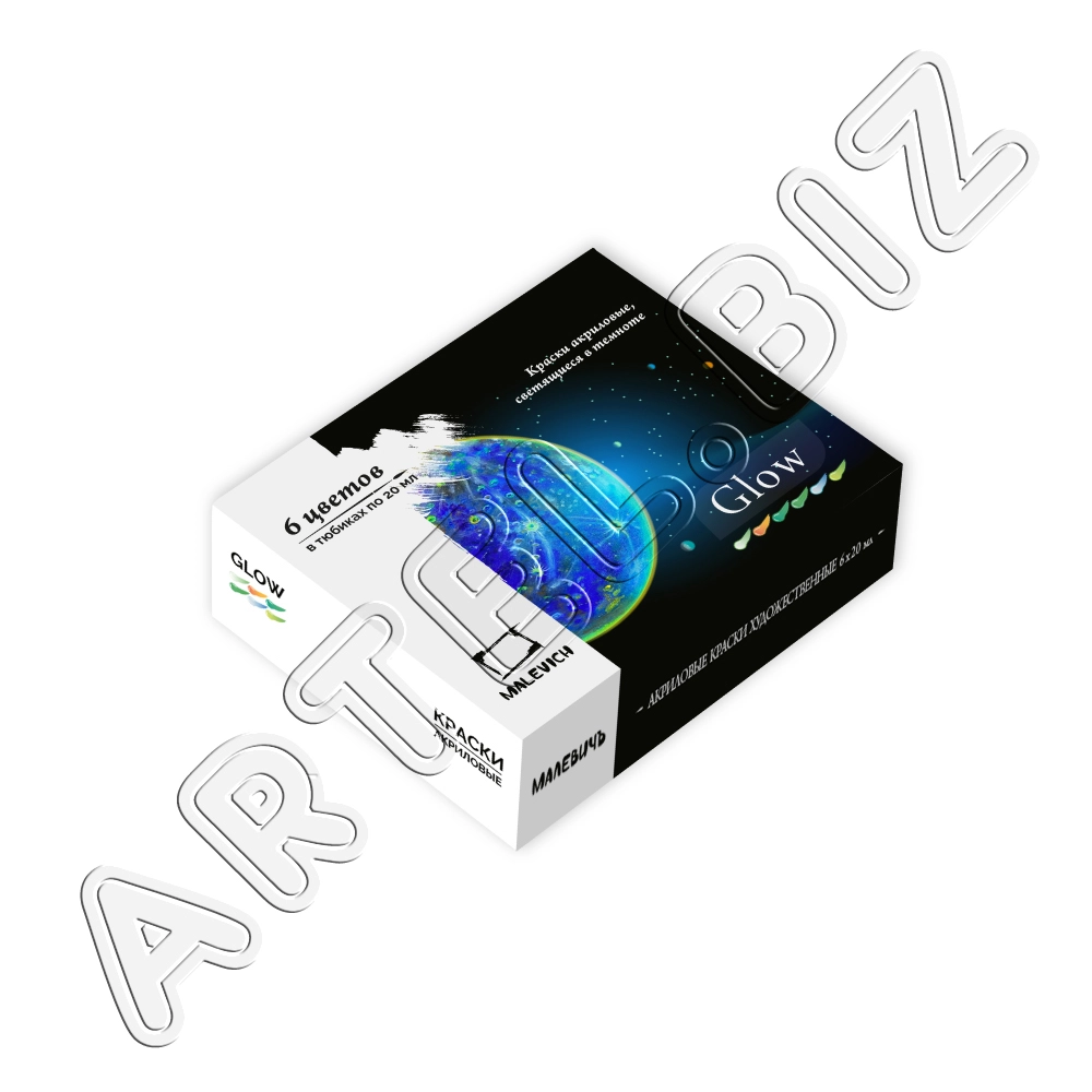 Набор акриловых красок Glow светящаяся в темноте, 6 цв. по 20 мл, Малевичъ