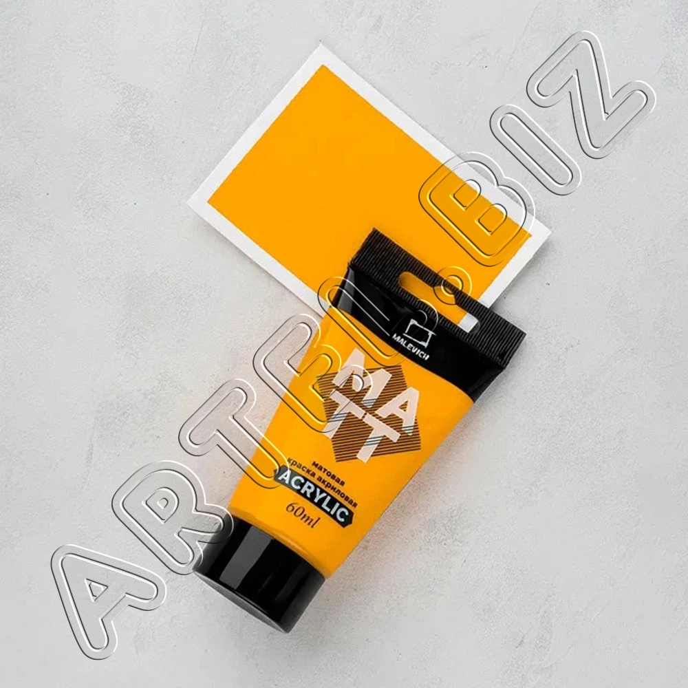 Краска акриловая матовая, Жёлтая средняя, 60 мл, Малевичъ