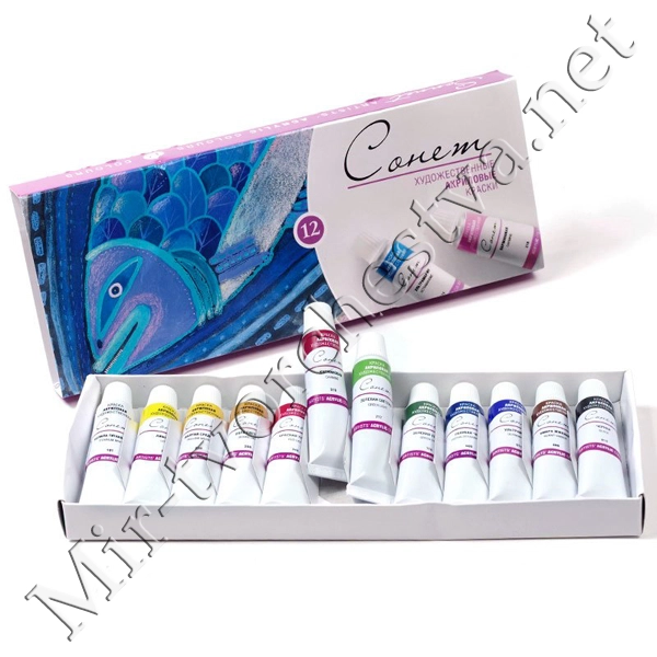 Набор акриловых красок, 12 цв. по 12 мл, Малевичъ