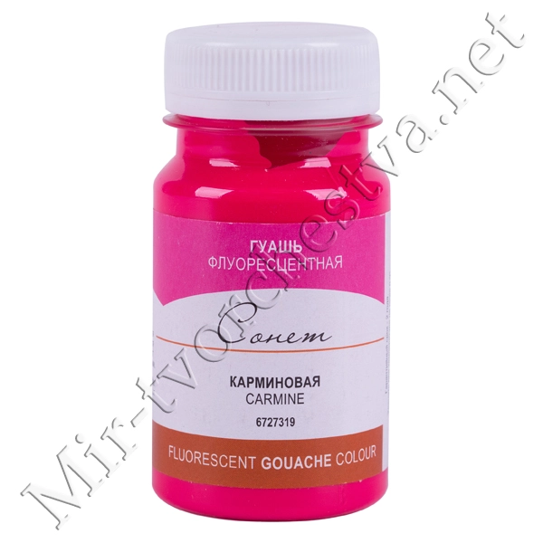 Краска гуашевая флуоресцентная, Карминовая, 100мл, Сонет
