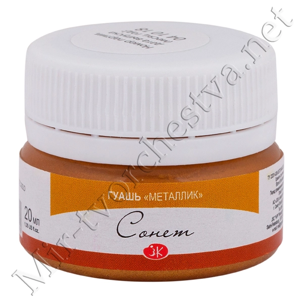 Краска гуашевая металлик, Бронза, 20мл, Сонет