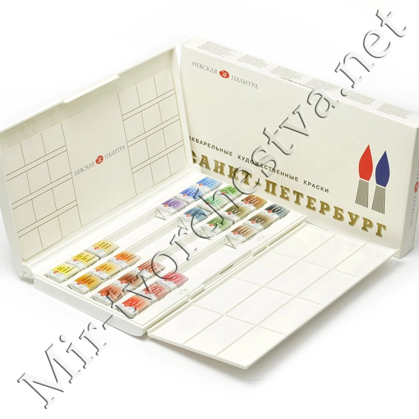 Набор акварельных красок, 24 кюветы, пластиковая коробка с палитрой, Белые Ночи