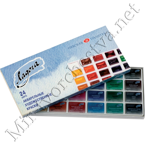 Набор акварельных красок 24 кюветы в картоне, Белые Ночи