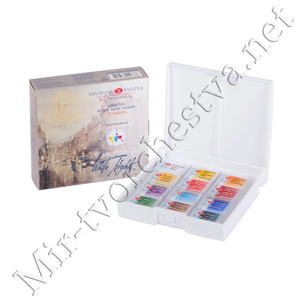 Набор акварельных красок IWS 12 цветов в кюветах пластик в картонном чехле, Белые Ночи