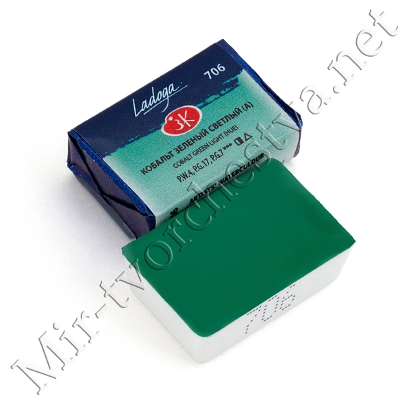 Краска акварельная, Кобальт зеленый светлый (А), 2.5мл, Ладога