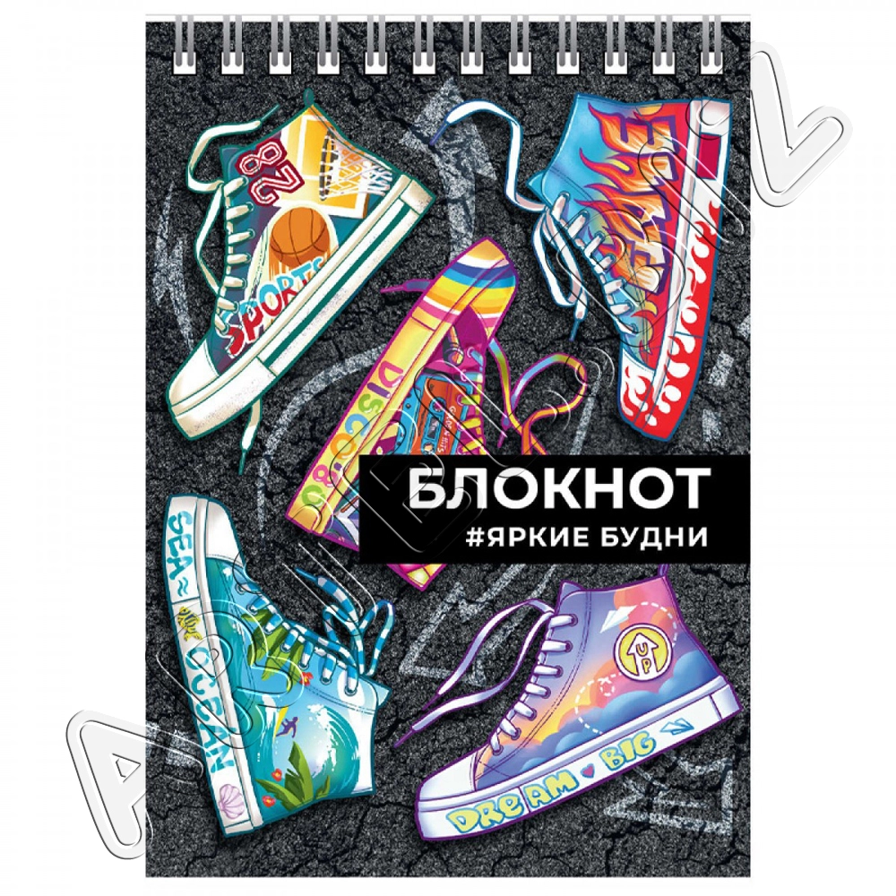 Блокнот А6 гребень 80л ЯРКИЕ КЕДЫ клетка арт.64310