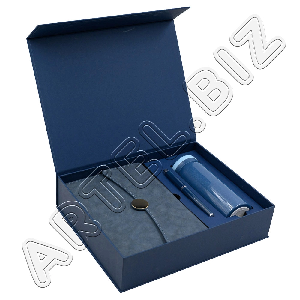 Ежедневник А5 120л МОНТЕ СИНИЙ ручка +термос в подар.упак. арт.17260