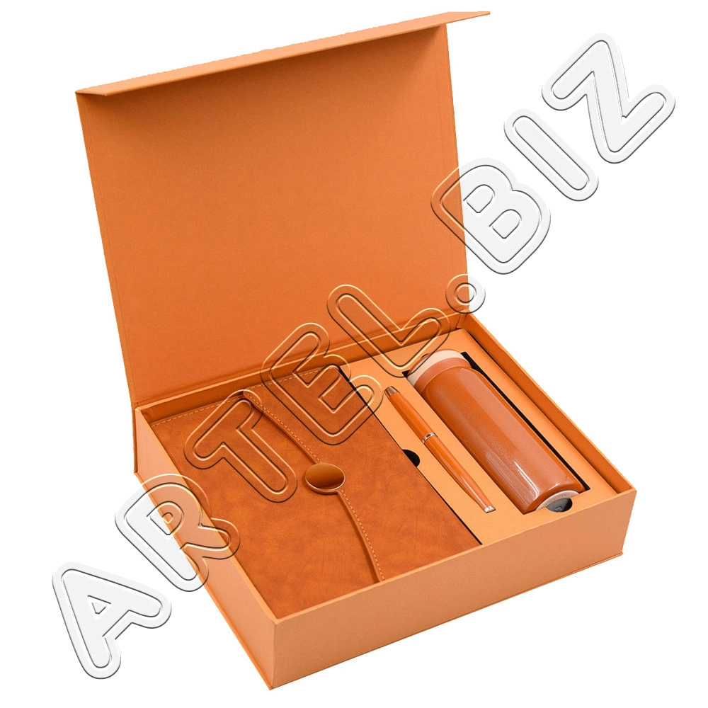 Ежедневник А5 120л МОНТЕ ОРАНЖЕВЫЙ ЩЕРБЕТ ручка+термос в подар.упак. арт.17300