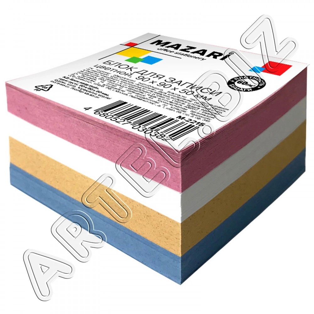 Блок для записи ЦВЕТНОЙ 90*90*50мм 60г/м2, Mazari