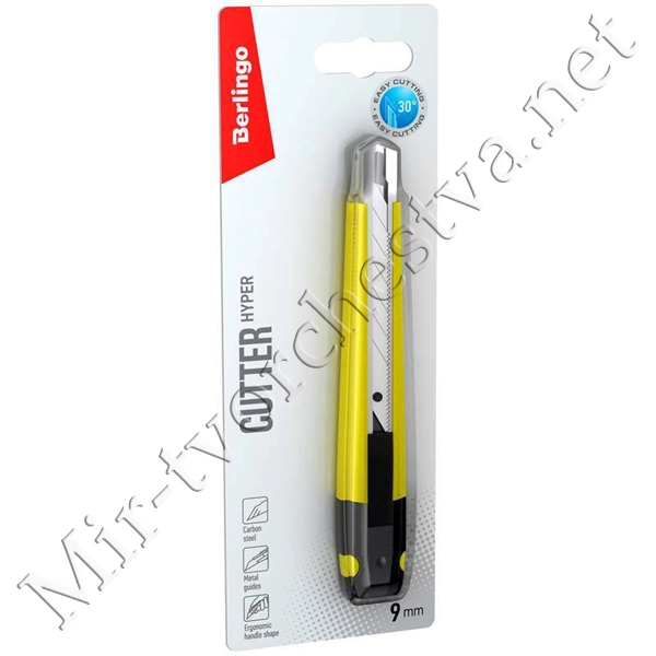 Нож канцелярский, 9мм, Жёлтый, BM4123_b, Berlingo Hyper