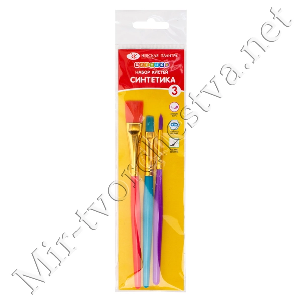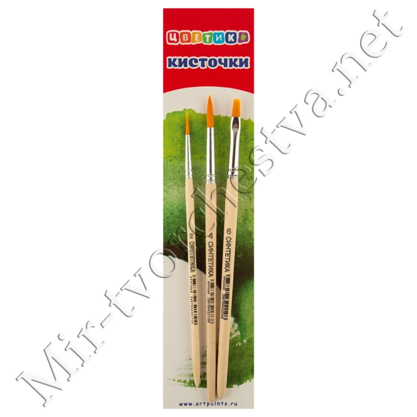 Набор кистей №10 (3 шт.) (синтетика круглая №2, 4, синтетика плоская №6), Цветик