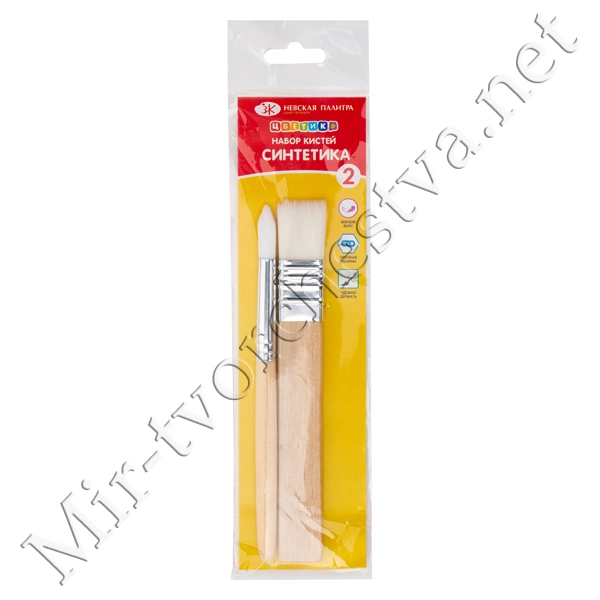Набор кистей СИНТЕТИКА, 2 шт., укороченная ручка (белая щетина, дерево), Цветик