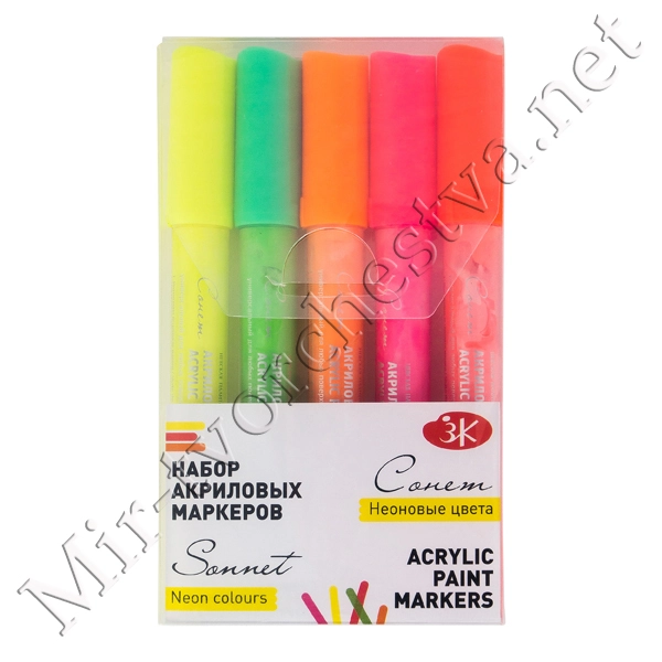 Набор акриловых маркеров "Неоновые цвета", 5 цветов, Сонет