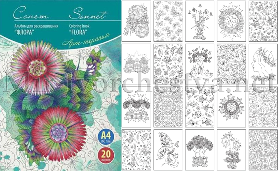 Арт-терапия "Флора", А4, 160 г/м2, 20 листов, Сонет