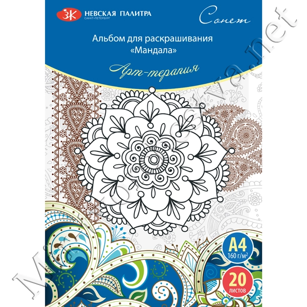 Арт-терапия "Мандала", А4, 160г/м2, 20 листов, Сонет