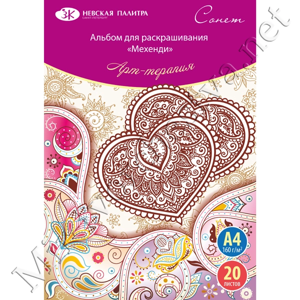Арт-терапия "Мехенди", А4, 160 г/м2, 20 л, Сонет