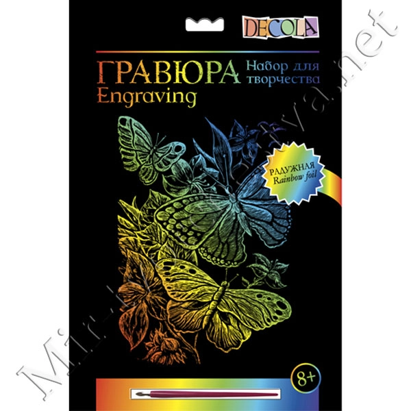 Гравюра, 210х297мм, 350г, радужная, Бабочки, Decola