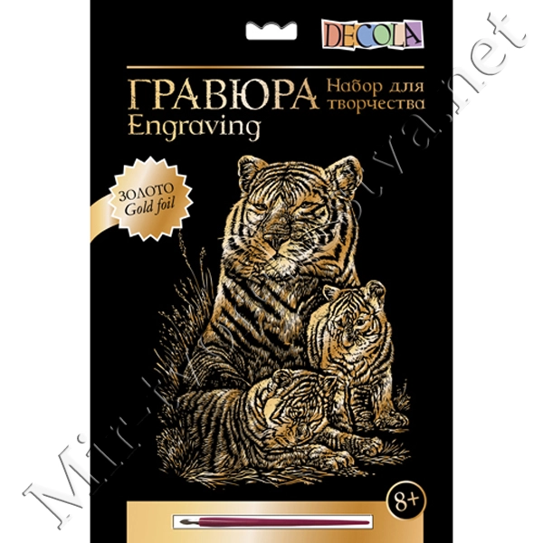 Гравюра "Тигрица с тигрятами", 210*297 мм, 350 г, золото, Decola