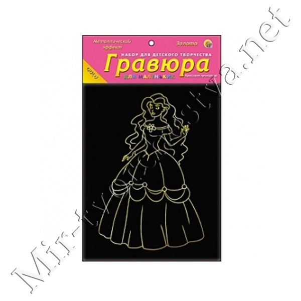 Гравюра 13х17см, для малышей, Красивая принцесса, Золото