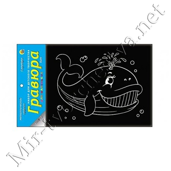 Гравюра 13х17см, для малышей, Кит, Серебро