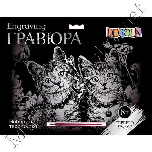 Гравюра "Котята", 210*297 мм, 350 г, серебро, Decola