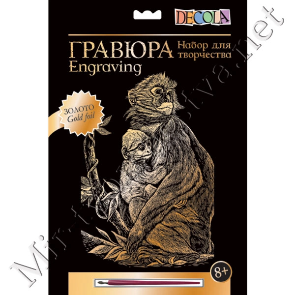 Гравюра "Обезьяна с детенышем", 210*297 мм, 350 г, золото, Decola