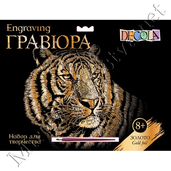 Гравюра "Тигр", 210*297 мм, 350 г, золото, Decola