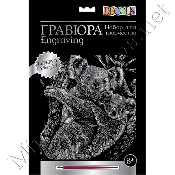 Гравюра "Коала с детенышем", 210*297 мм, 350 г, серебро, Decola