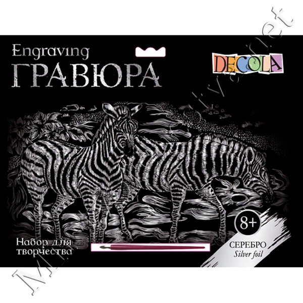 Гравюра "Зебры", 210*297 мм, 350 г, серебро, Decola