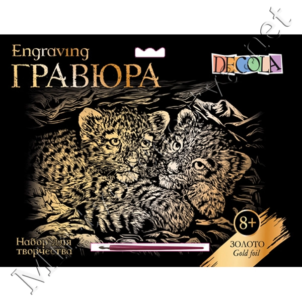 Гравюра "Детеныши леопарда", 210*297 мм, 350 г, золото, Decola