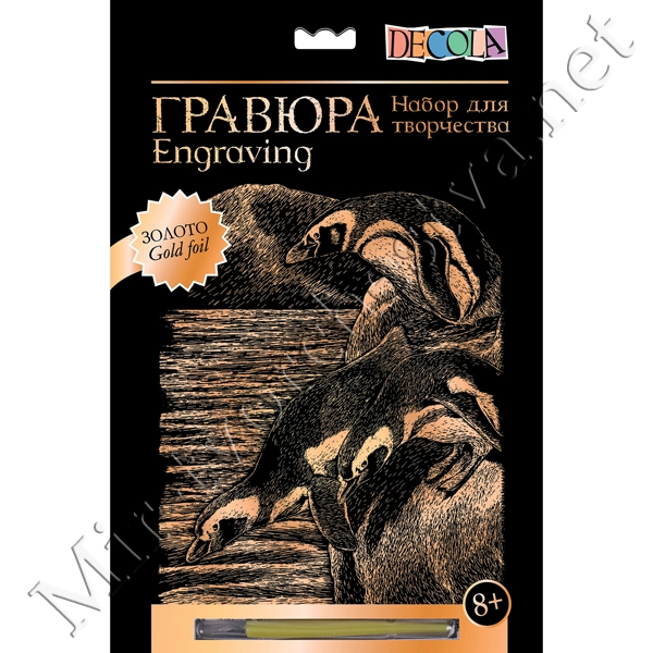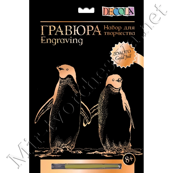 Гравюра "Пингвины", 210*297 мм, 350 г, золото, Decola