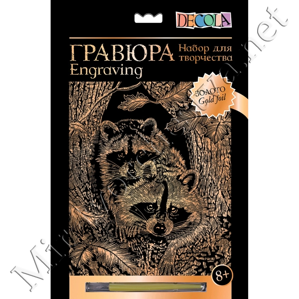 Гравюра "Еноты", 210*297 мм, 350 г, золото, Decola