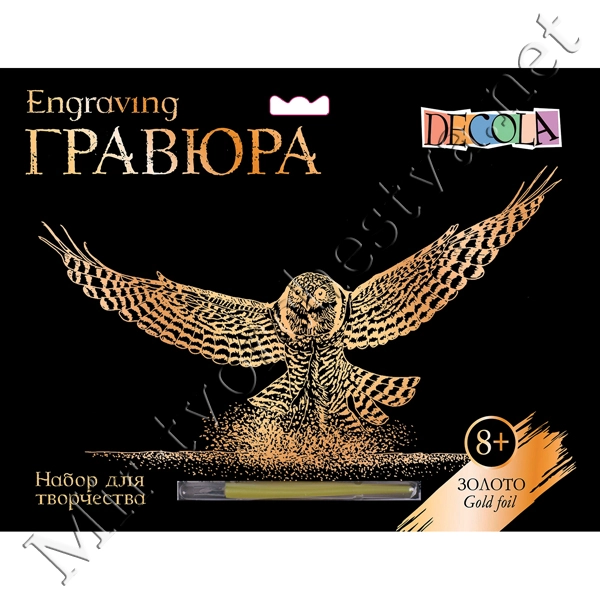 Гравюра "Сова в полете", 210*297 мм, 350 г, золото, Decola