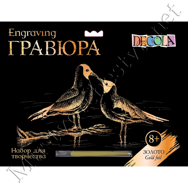 Гравюра "Птички", 210*297 мм, 350 г, золото, Decola