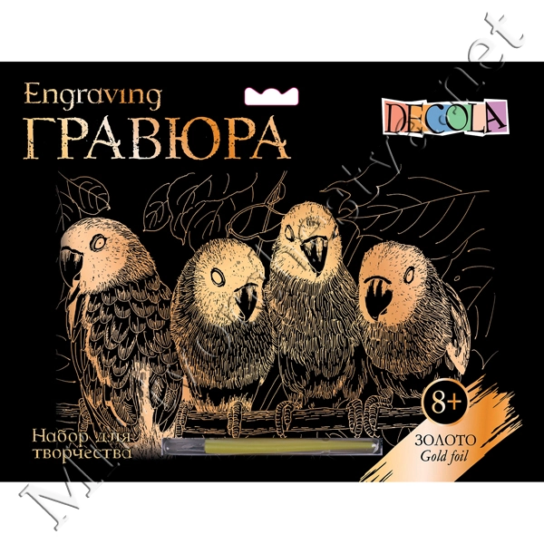 Гравюра "Попугаи", 210*297 мм, 350 г, золото, Decola