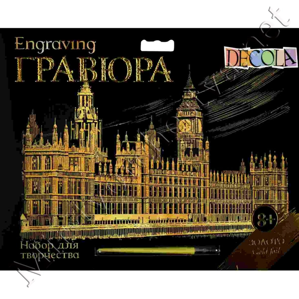 Гравюра "Биг Бен и Парламент", 210*297 мм, 350 г, золото, Decola