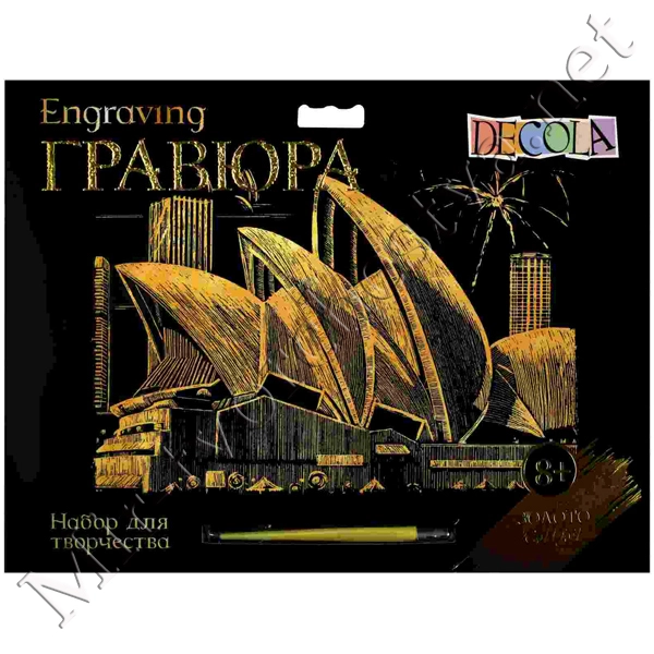Гравюра "Сиднейский оперный театр", 210*297 мм, 350 г, золото, Decola