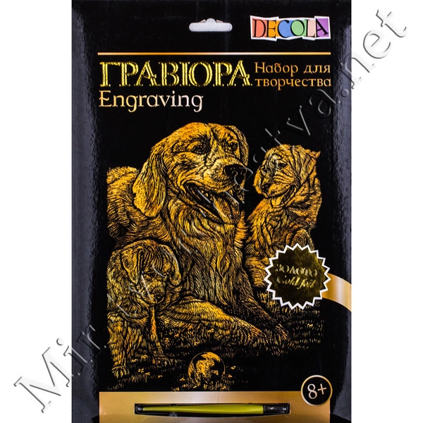 Гравюра "Собака и щенки", 210*297 мм, 350 г, золото, Decola