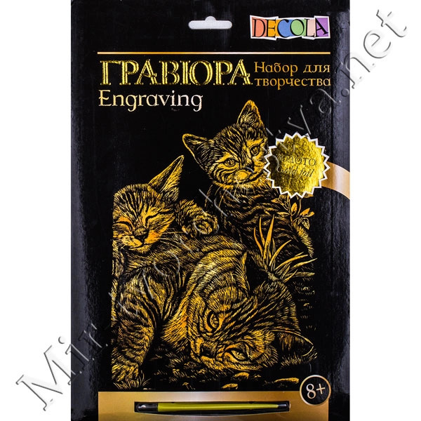 Гравюра "Три котенка", 210*297 мм, 350 г, золото, Decola