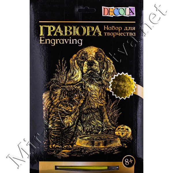 Гравюра "Щенок и котенок", 210*297 мм, 350 г, золото, Decola