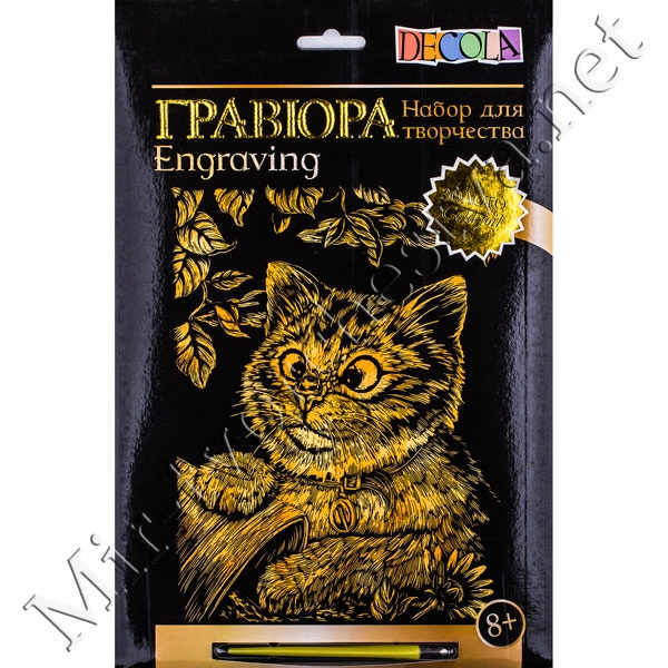 Гравюра "Кот и божья коровка", 210*297 мм, 350 г, золото, Decola