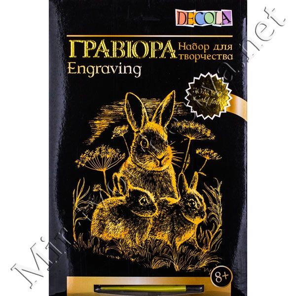 Гравюра "Кролики", 210*297 мм, 350 г, золото, Decola
