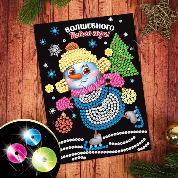 Набор для творчества. Новогодняя аппликация пайетками с клеевым слоем «Снеговик» 21x29,7 см